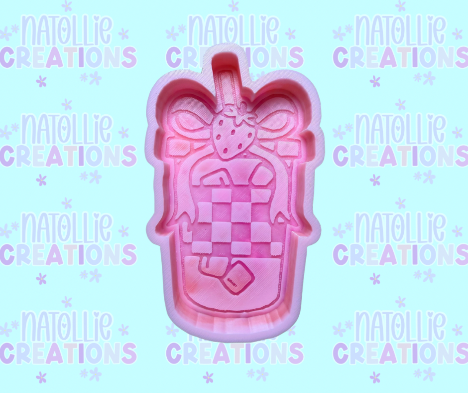 Checkered Iced Drink W Strawberry Bow Freshie Silicone Mold